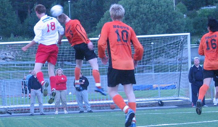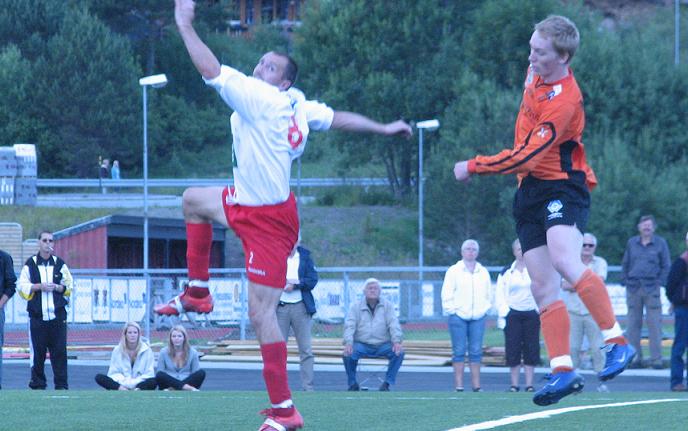 (Bildet: Frantz Frantzen i en luftduell på midtbanen... )