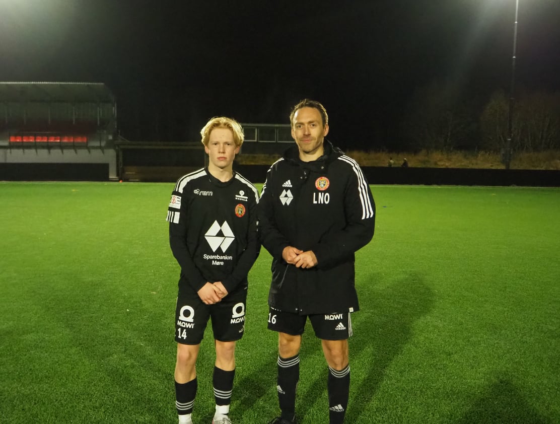 To av målscorarane til Bergsøy denne dagen, Elias Hauge og Daniel Kvalsvik.