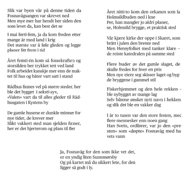 Her har vi en oversikt over lokale Bergsøysanger og Fosanvågsanger