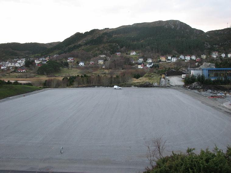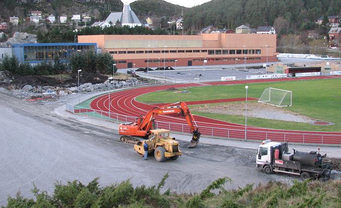 Nattbildet øverst på denne sida er det nyaste bildet tatt ifrå området. Det blir raskt mørkt, og bildet blei tatt i 1630-tida idag. På bildet ser en likevel at det har blitt asfaltert opp mot veien, noko som en ser ikkje hadde blitt gjort igår (bildet under). Draumen no er at en kan trene på kunstgras om ei 2 ukers tid. Sjølvsagt, det hadde vore gøy å trent på kunstgras også neste uke - men en får prøve å ikkje gjere draumane for kravstore.