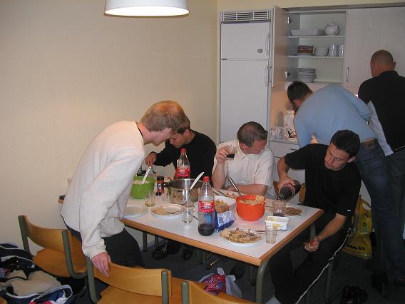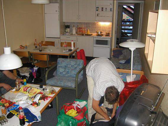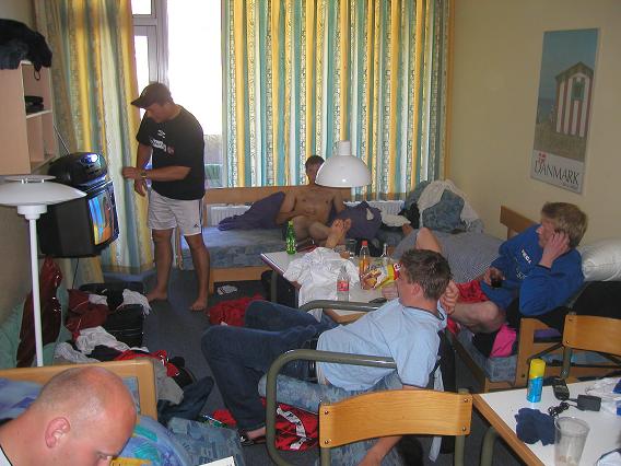 Etter en lang ventetid fekk spelarane kome inn på hotellromma sine kl 12. Det var litt varierte antall spelarar på kvart rom. På det eine rommet var det ganske overbefolka, med
