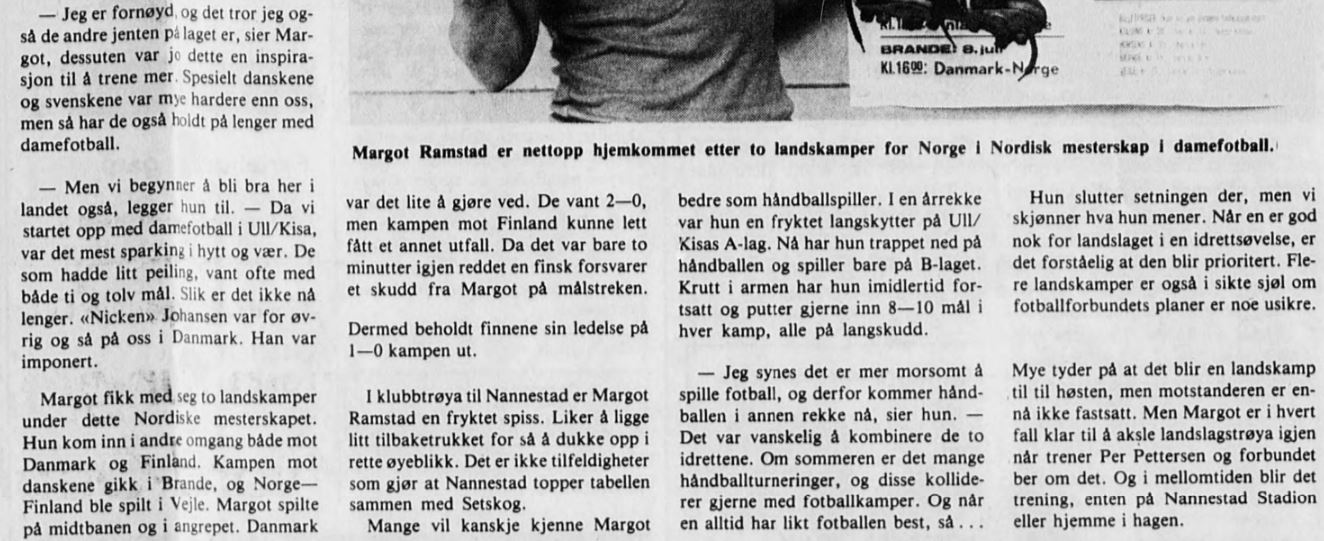 | 1975 | Ull/Kisa | Ull/KIsa slo Fenstad med 18-0 i en kamp og Margot scora 9 mål. Scoringsrekord. |